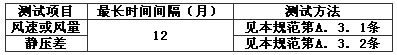 表A.2.2-2 靜壓差、風速或風量測試