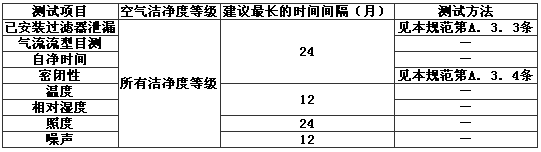 最長測試時間間隔是根據近年來我國一些合資企業的內部質量管理條款以及ISO 14644-2的空氣潔凈度認證測試要求而編制的。