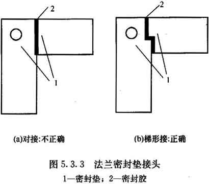 5.3.3 法蘭密封墊宜減少接頭,接頭應采用階梯形或企口形并避開螺栓孔(圖5.3.3),也可采用連續灌膠成型或沖壓一體成型的密封墊。