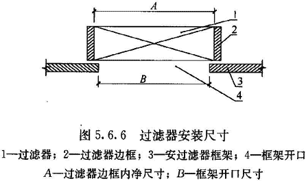 5.6.6 送風末端過濾器安裝前,應再次檢查承載過濾器的框架開口尺寸,開口尺寸不得大于送風末端過濾器的邊框內凈尺寸(圖5.6.6)。