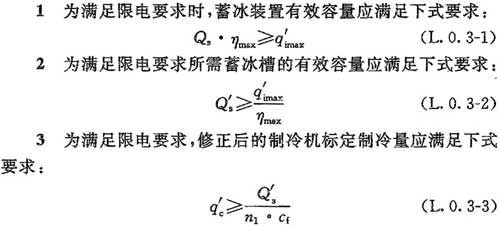 L.0.3 當(dāng)?shù)仉娏Σ块T有其他限電政策時(shí),所選蓄冰量的最大小時(shí)取冷量應(yīng)滿足限電時(shí)段的最大小時(shí)冷負(fù)荷的要求,并應(yīng)符合下列規(guī)定: