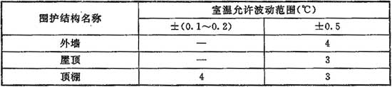 8.1.8 工藝性空氣調節區,當室溫允許波動范圍小于或等于±0.5℃時,其圍護結構的熱惰性指標D值不應小于表8.1.8的規定。