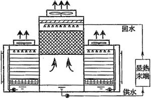 通常情況下,當室外空氣的露點溫度低于14℃~15℃時,采用間接—直接蒸發冷卻方式,可以得到接近16℃的空調冷水作為空調系統的冷源。直接蒸發冷卻式系統包括水冷式蒸發冷卻、冷卻塔冷卻、蒸發式冷凝等。在西北部地區等于燥氣候區,可通過蒸發冷卻方式直接提供用于空調系統的冷水,減少人工制冷的能耗,符合條件的地區推薦優先推廣采用。