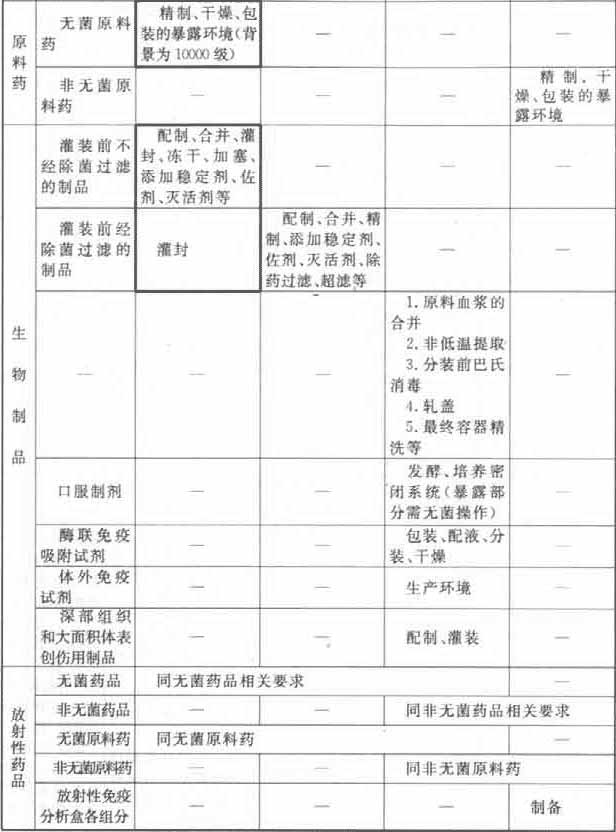 附錄A 藥品生產環境的空氣潔凈度等級舉例