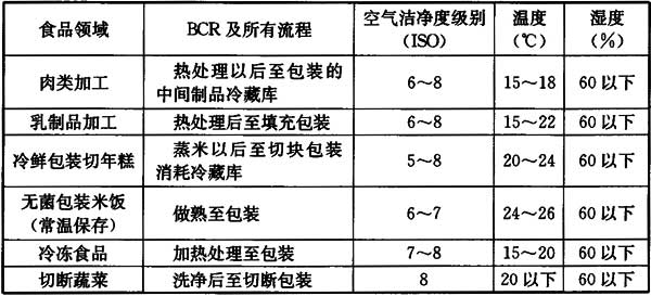 8 各種食品生產(chǎn)要求的潔凈度