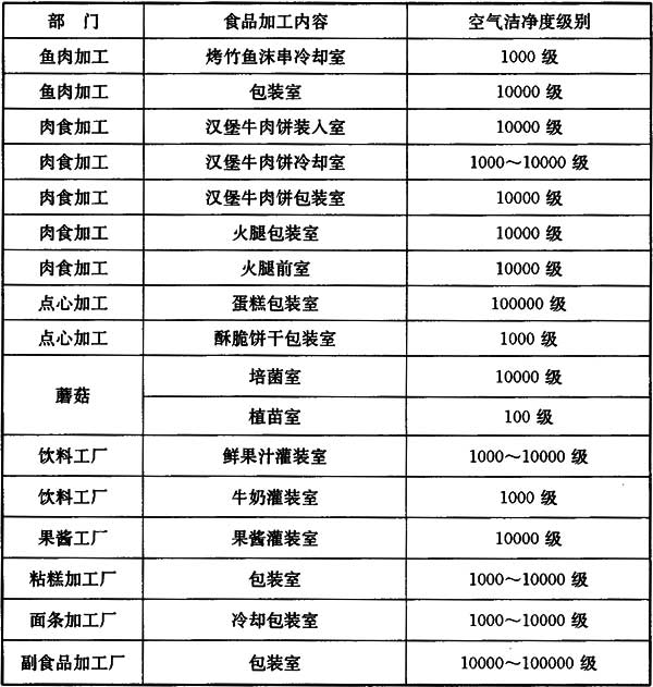 我國少數(shù)食品標準中提出潔凈用房及其級別要求,但沒有綜合性的具體設(shè)計措施。這些標準和其關(guān)于潔凈用房的要求如下: