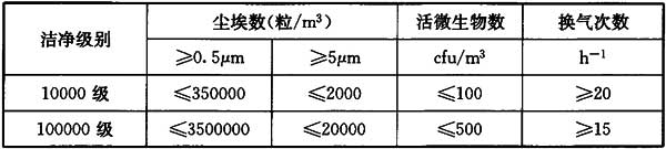 該標準中有關(guān)廠房潔凈度級別及換氣次數(shù)的要求如表12所示。